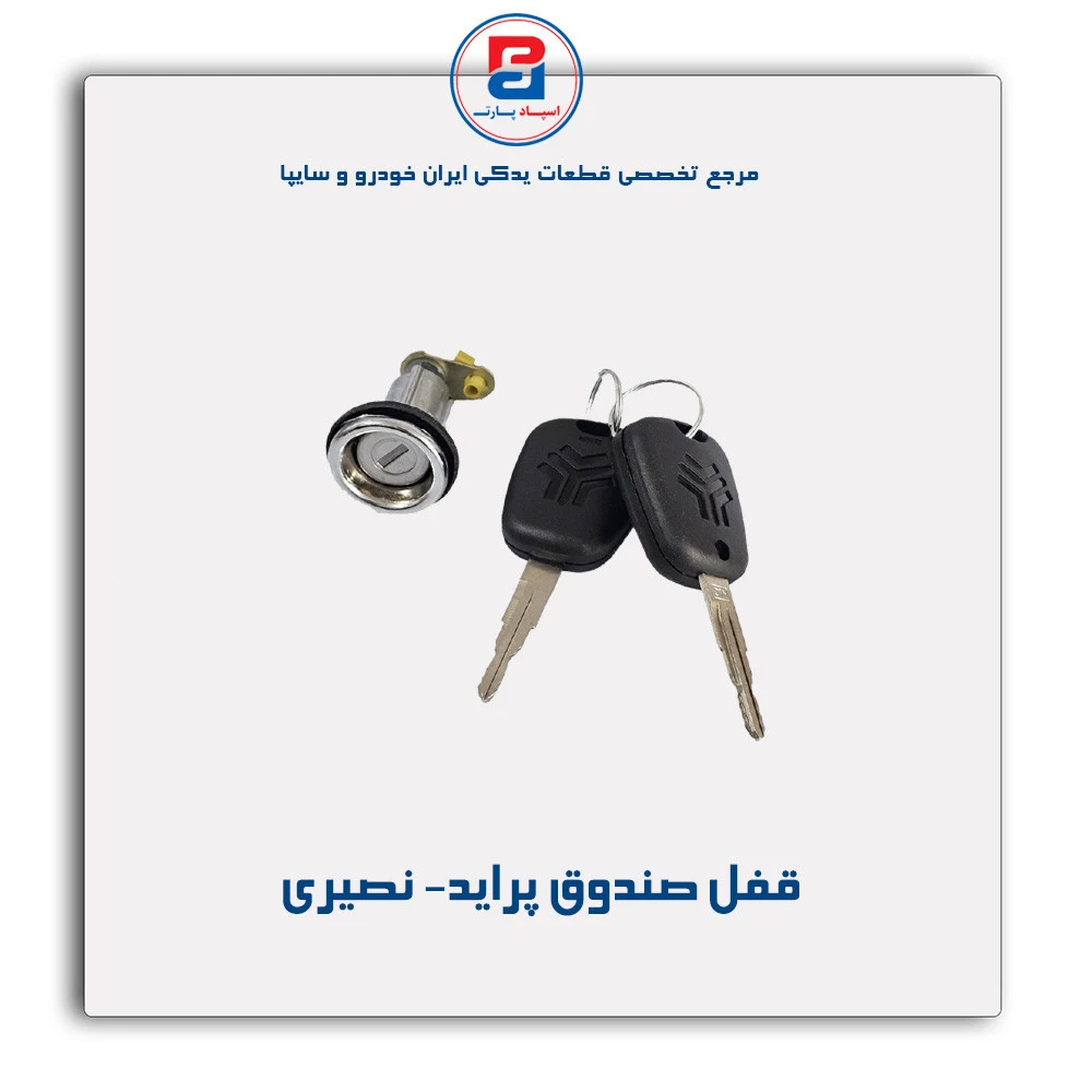 اگر بهدنبال بهترین و باکیفیتترین قفل صندوق پراید – نصیری هستید، فروشگاه تخصصی اسپاد پارت بهعنوان نمایندگی رسمی برند نصیری در اصفهان، این محصول را با قیمت مناسب، گارانتی معتبر و امکان خرید اقساطی بدون ضامن عرضه میکند. این قفل صندوق طراحی شده تا امنیت کامل درب صندوق خودرو شما را تضمین کند و از مشکلات متداول مانند باز شدن ناگهانی یا خرابی قفل جلوگیری نماید.