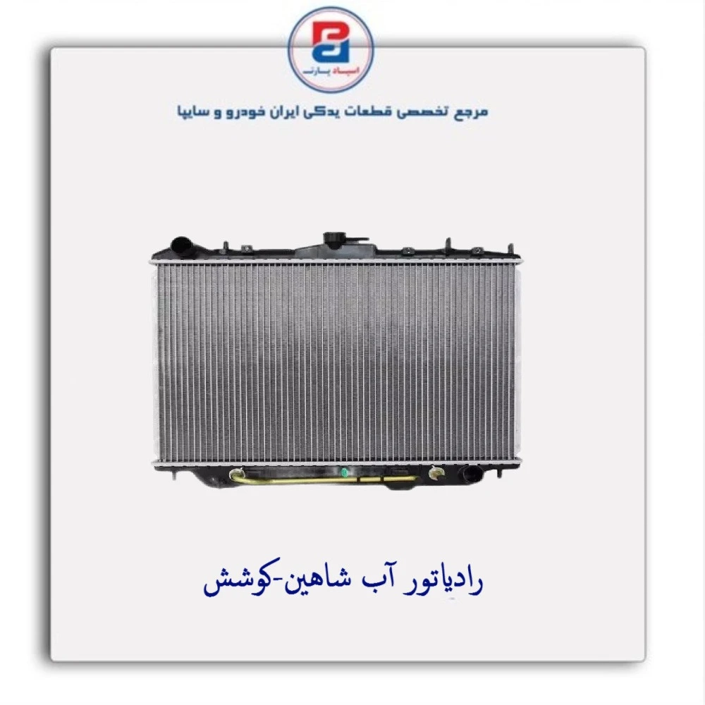 رادیاتور آب خودروی شاهین ساخت شرکت کوشش رادیاتور است و از جنس آلومینیوم است. شماره فنی این رادیاتور DR-EG692 است