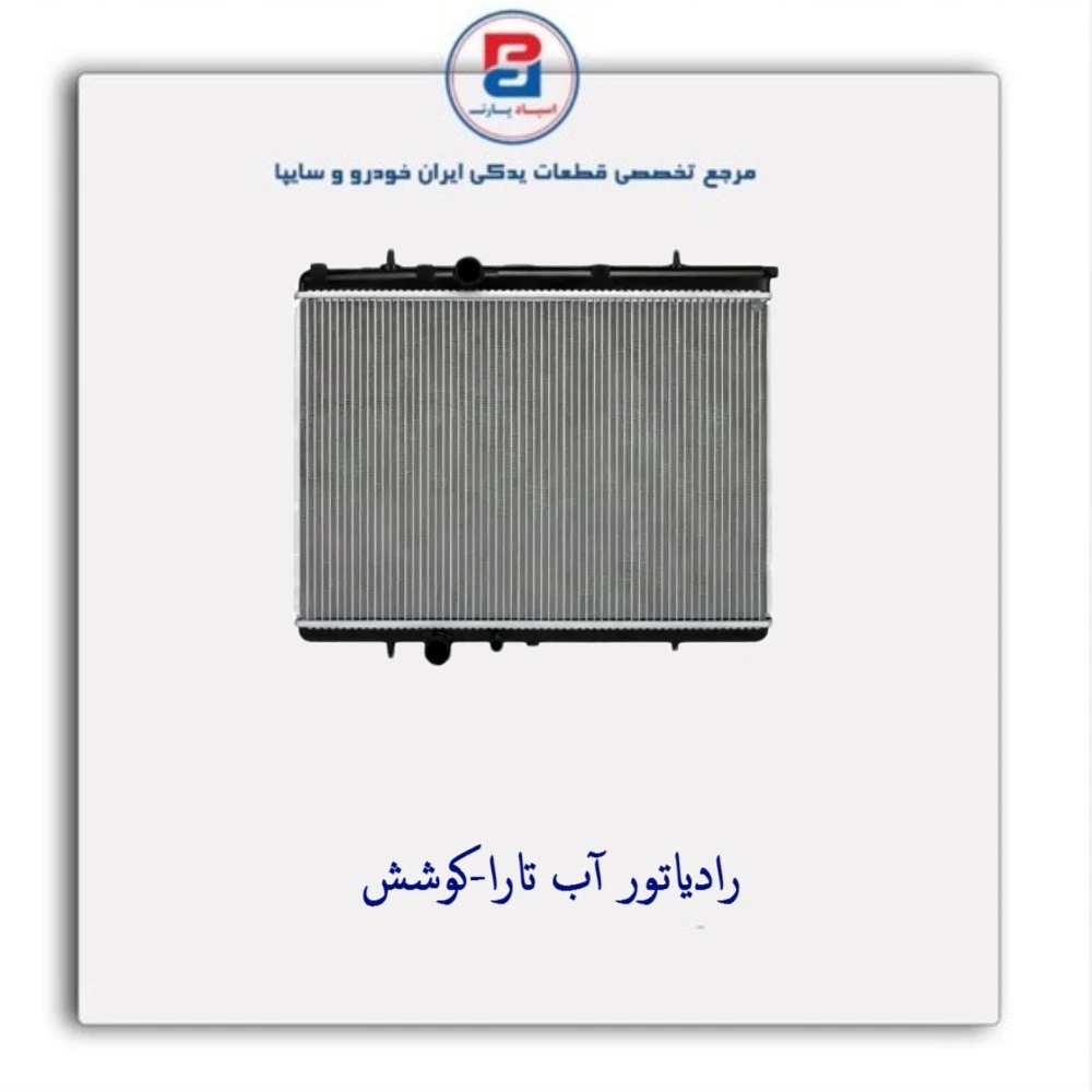 رادیاتور آب تارا-کوشش، یک قطعه حیاتی در سیستم خنککننده خودروی تارا است که توسط شرکت کوشش رادیاتور تولید میشود. این رادیاتور وظیفه خنک کردن مایع خنککننده موتور را بر عهده دارد تا از گرم شدن بیش از حد موتور جلوگیری شود. رادیاتور تارا اتوماتیک (مشترک با پژو 2008) کوشش رادیاتور دارای ابعاد شبکه 38055627، سایز لوله 26 میلیمتر، و یک ردیف لوله است. جنس شبکه رادیاتور از آلومینیوم و جنس مخازن آن از PA66-GF30 میباشد. شماره فنی این رادیاتور در کوشش رادیاتور 4101010057-506 است.